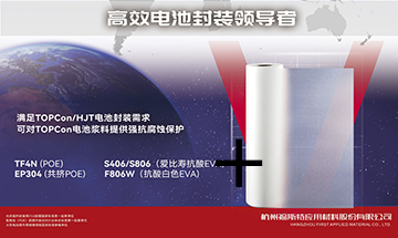 福斯特TF4N POE突破TOPCon單玻封裝難點(diǎn),CF連接膜助力HJT/TOPCon實(shí)現(xiàn)0BB! [2023-11-06]2023年金秋,19th CSPV會議在西安如期召開。作為全球領(lǐng)先的封裝材料供應(yīng)商,福斯特針對當(dāng)下先進(jìn)電池組件的封裝挑戰(zhàn),給出了全面的解決方案。[查看詳情]