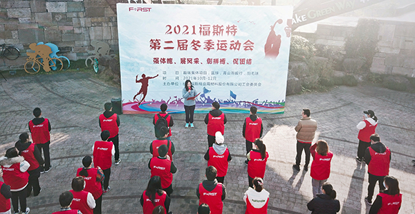 工會主席安望飛作主題發言,她鼓勵大家發揚福斯特關懷他人、互幫互助、堅持到底的團隊協作精神,圓滿完成本次毅行比賽。隨后,運動員們大聲喊出“福斯特2021牛氣沖天,2022虎虎生威”的口號,對即將到來的新年表達美好的祝愿。