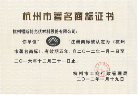 熱烈祝賀福斯特榮獲杭州市著名商標(biāo)。